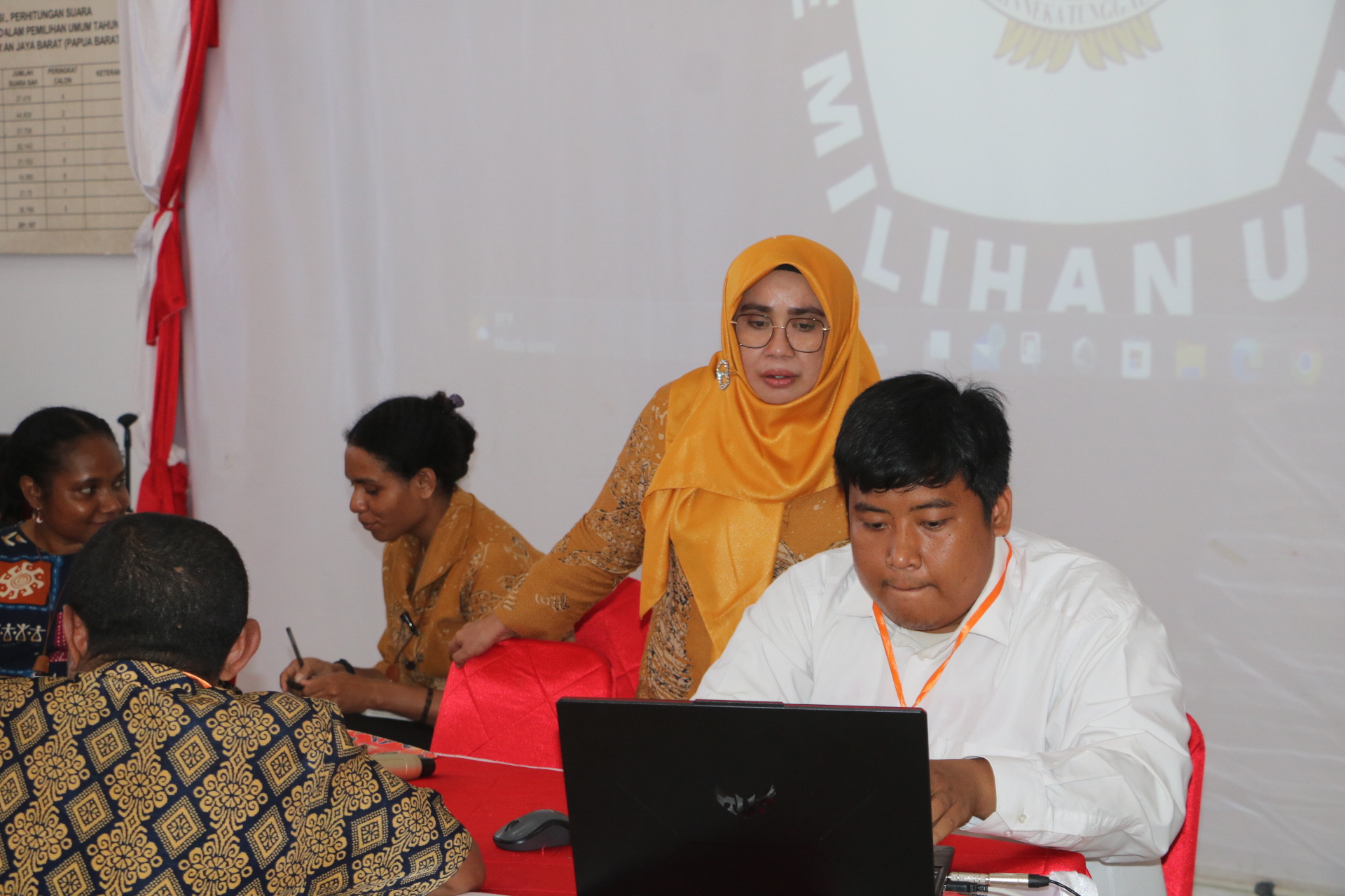 Nurlaila Muhammad (Anggita Bawaslu Papua Barat) saat mengawasi secara lansung proses pemeriksaan dokumen Persyaratan Minimal Dukungan Bakal Calon Anggota DPD Prov. Papua Barat (Adolof Fonataba)[/caption]