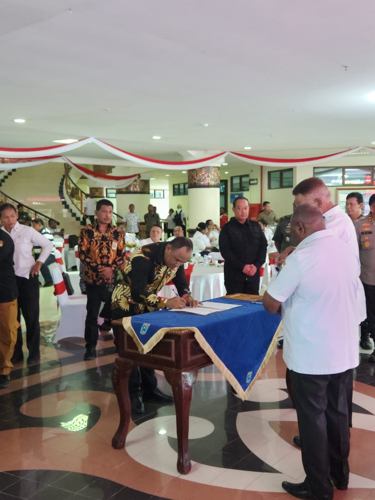 “Hari ini kita telah bersepakat melalui pemilu damai dan berintegritas. Seluruh elemen baik pemerintah, masyarakat dan penyelenggara dapat berkomitmen untuk melaksanakan deklarasi dengan penuh tanggung jawab,†ungkap Pj. Gubernur Prov. Papua Barat, Paulus Waterpauw. (Rabu, 09/08/2023)