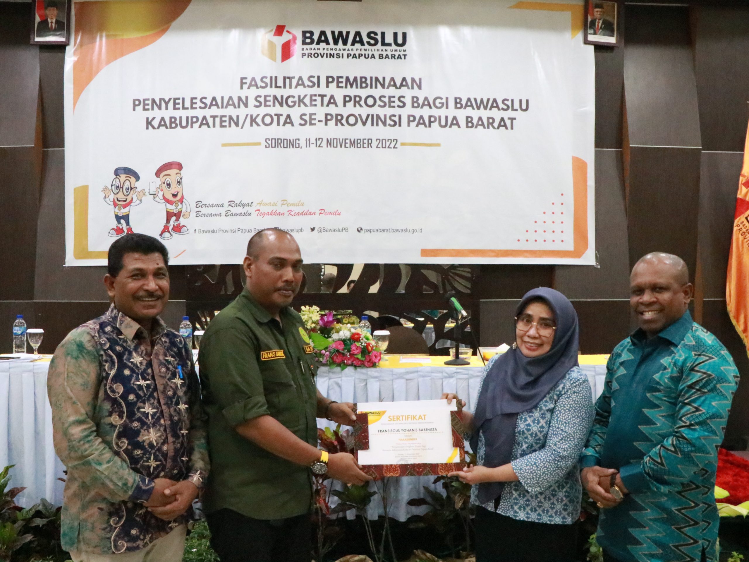 Koordinator Divisi Hukum dan Penyelesaian Sengketa Bawaslu Papua Barat, Nurlaila Muhammad, mengungkapkan bahwa kegiatan tersebut dimaksudkan untuk membekali para anggota bawaslu Kab./Kota yang nantinya akan bertindak sebagai pengadil dalam penyelesaian sengketa proses Pemilu.