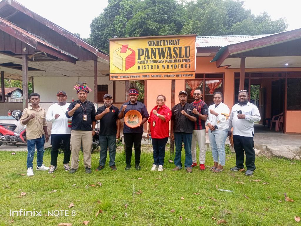 Foto Bersama Ketua Bawaslu Papua Barat (tengah, baju hitam) bersama Ketua n anggota Bawaslu Kab. Wondama dan jajaran Panwascam Distrik Wndiboi.[/caption]