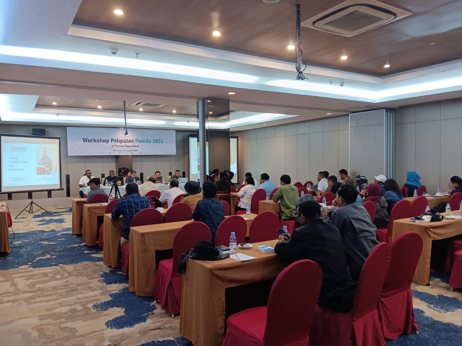 Hal tersebut disampaikan pada kegiatan Workshop Peliputan Pemilu di Papua Barat di mana turut hadir Paskalis Semunya Ketua KPU Provinsi Papua Barat, Asep Setiawan Anggota Dewan Pers, Dwi Eko Lokononto Pimpinan Redaksi beritajatim.com yang diselenggarakan oleh Dewan Pers di Swiss-belHotel Manokwari, Provinsi Papua Barat. Selasa, 01/08/2023.