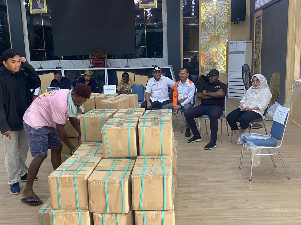 Ketua Bawaslu Provinsi Papua Bart Elias Idie mengatakan setelah berdiskusi dengan KPU Provinsi Papua Barat dan pihak keamanan, proses pembongkaran dan penyortiran logistik yang awalnya direncakanan untuk dilakukan di Pelabuhan Manokwari dipindahkan ke Kantor KPU Provinsi Papua Barat. Hal ini untuk menghindari kesalahan pengiriman dan juga karena faktor cuaca yang tidak dapat diprediksi.