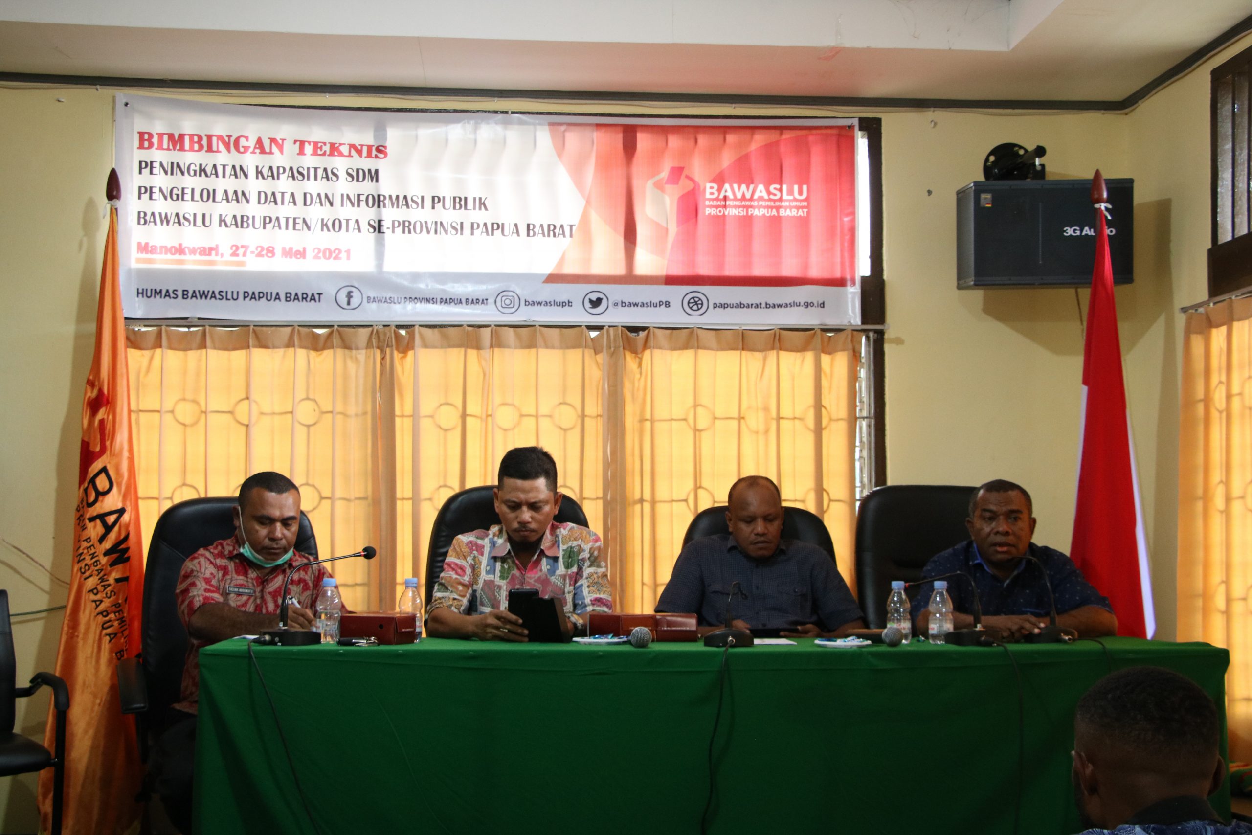 Manokwari- Bawaslu Provinsi Papua Barat beserta jajarannya di bawaslu Kab./Kota se-Provinsi Papua Barat terus melakukan pembenahan dalam mengelola data dan informasi. Hal ini dibuktikan dengan dilaksanakannya kegiatan bimbingan teknis (bimtek) Peningkatan Kapasitas Sumber Daya Manusia (SDM) Pengelolaan Data dan Informasi pada tanggal 27-28 Mei 2021 di ruang media center Sekretariat Bawaslu Provinsi Papua Barat. Bawaslu Provinsi Papua Barat Selenggarakan Kegiatan Bimtek Peningkatan Kapsitas SDM Pengelolaan Data Dan Informasi