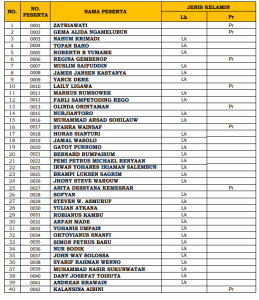 Nomor Peserta 0001 sampai dengan 0036 dan Sesi II yaitu Nomor Peserta 0037